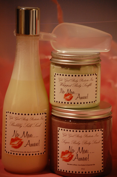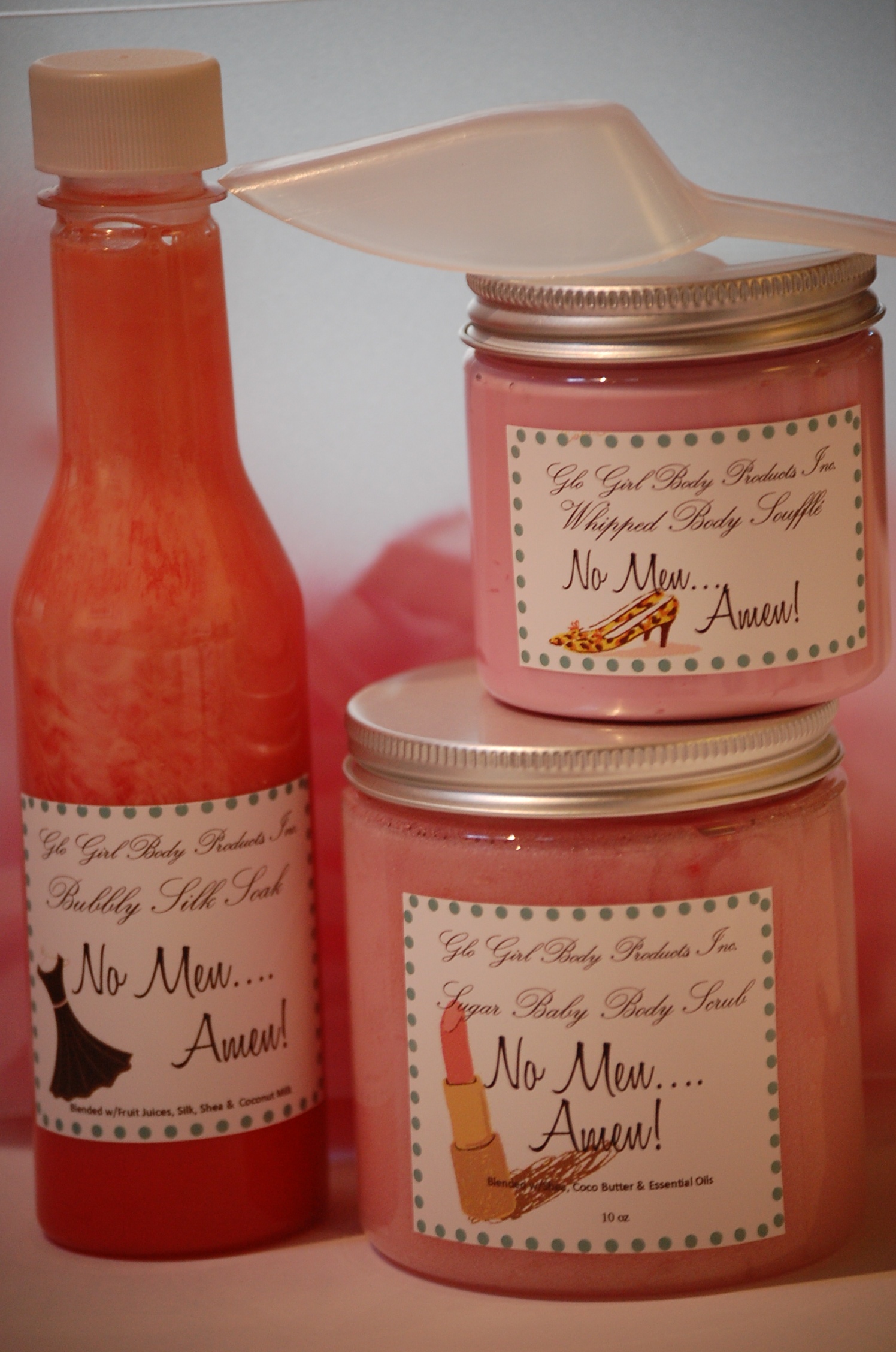 2. Next you will be smothered in our soft, silky and sweet sugar baby body scrub, scented in "Kiss him Goodbye" Hints of sugar dipped strawberry lip gloss wrapped in a pink fluffy cotton candy clouds. Blow him one last kiss goodbye- Your new life begin now!