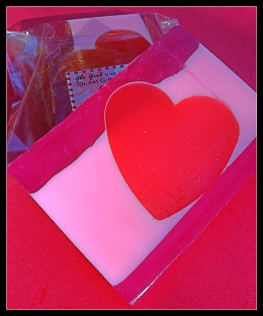 Our Love Struck Soap is not only handmade, its created using girly girl colors of pinks, purples and centered with a bright red heart! This yummy soap is blended with an assortment of delicious scents.... top notes of Apple, Mango, Strawberry and Grapefruit in a light floral Freesia and warm Amber, Tonka Bean Vanilla base. This is one of our most popular soap bars... It typically sells out before we could get it to the website!